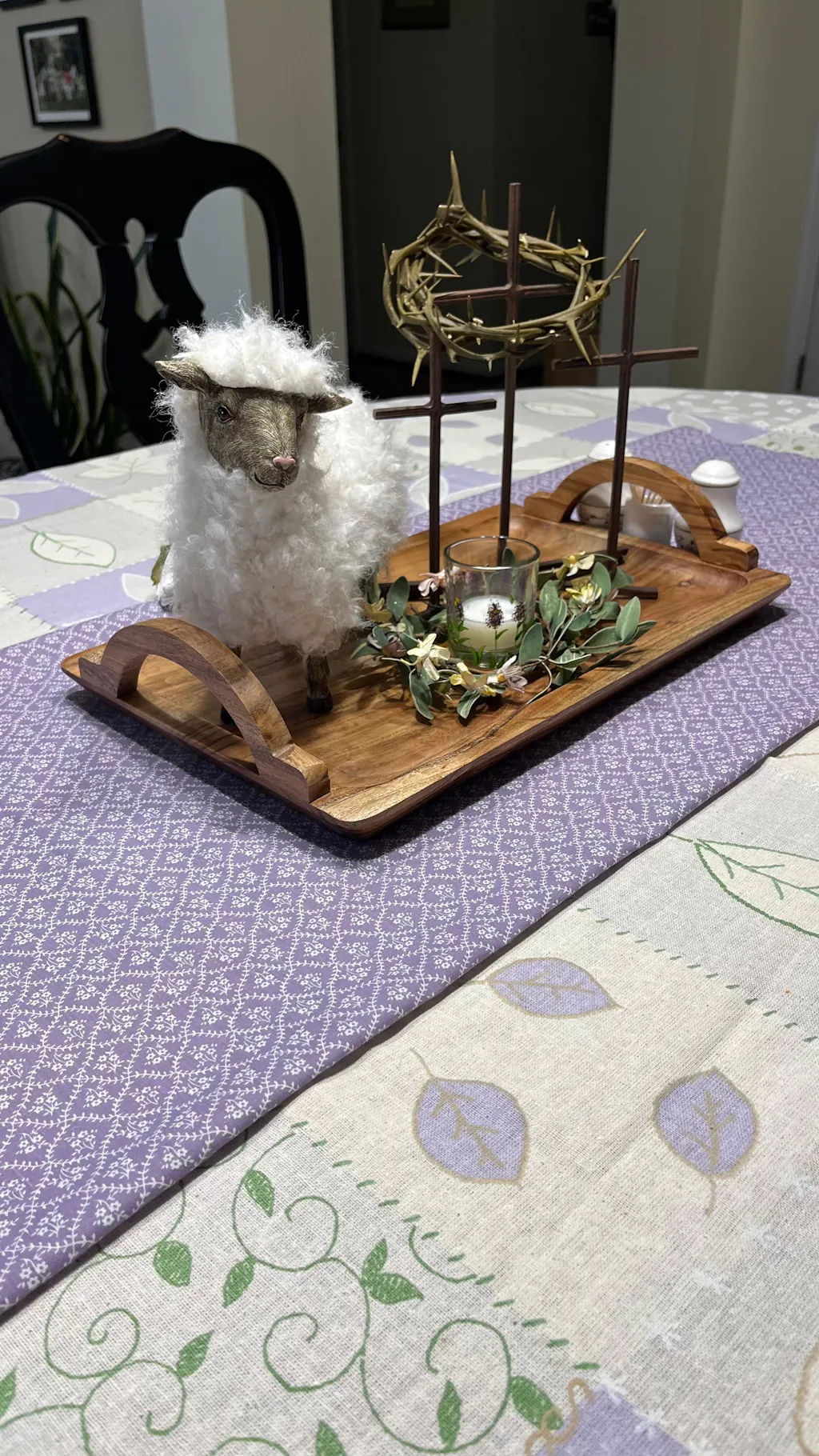 I ordered the Calvary crosses and crown of thorns and made a lovely kitchen table centerpiece. A beautiful reminder of Christ’s sacrificial love for us.