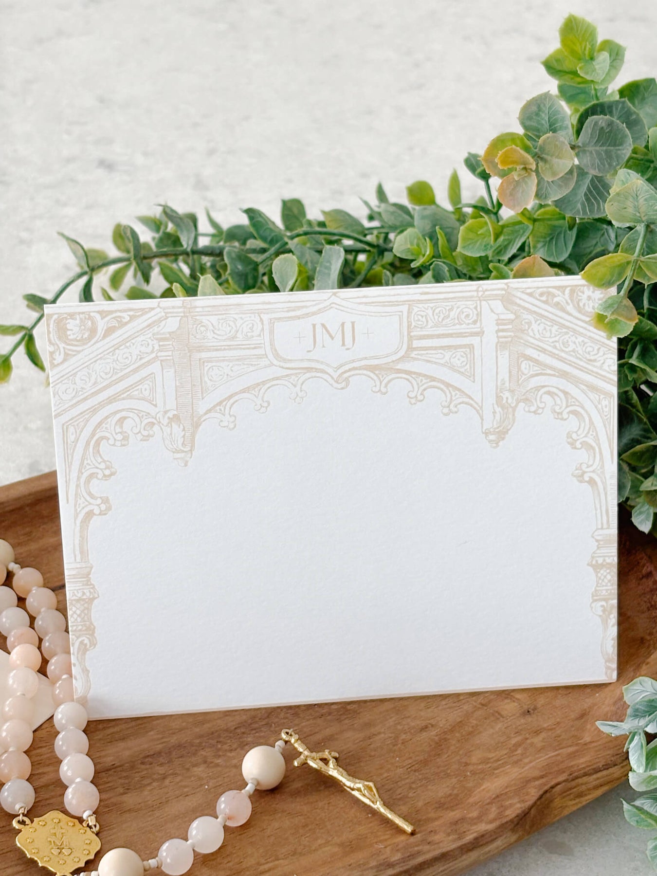 These thoughtfully designed Catholic note cards are a timeless way to share beauty, encouragement, and faith with those you love. Printed on our signature luxurious ivory cardstock with its soft eggshell finish, each 4.5" x 6" flat card offers a refined and elegant writing surface, perfect for thank-yous, prayer intentions, or notes of grace sent from the heart.