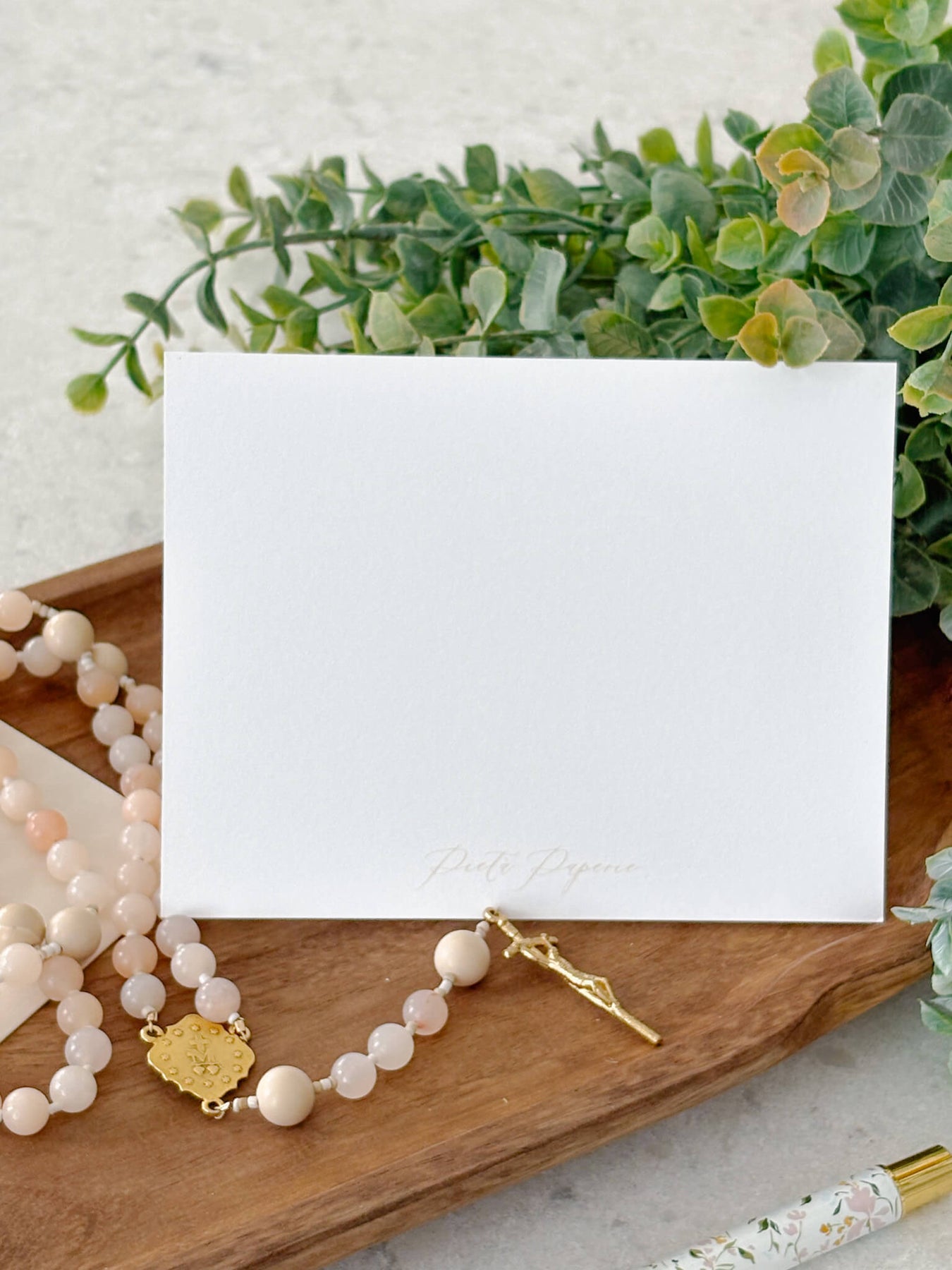 Paired with classic white euro-flap envelopes, this set of ten, beautifully designed by Pieta Paperie, is a beautiful way to honor the richness of the Catholic tradition while bringing a touch of reverence to your correspondence.