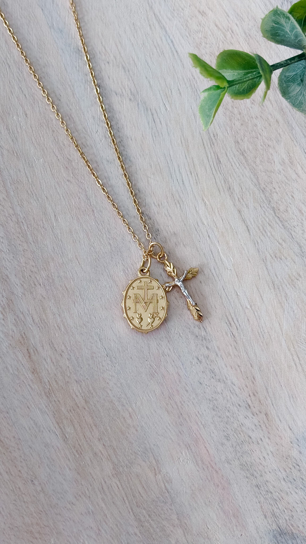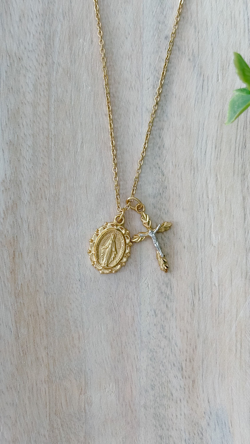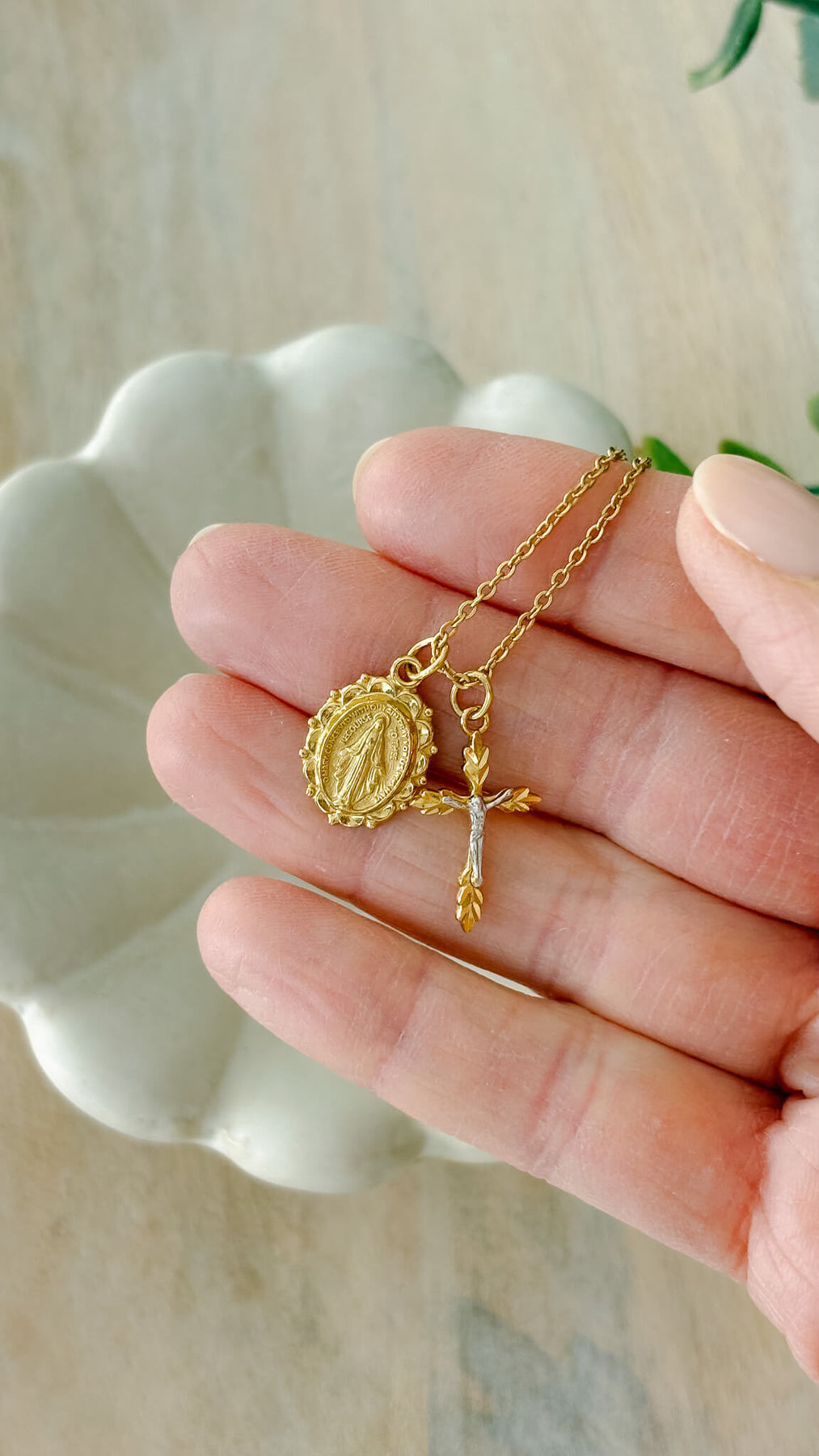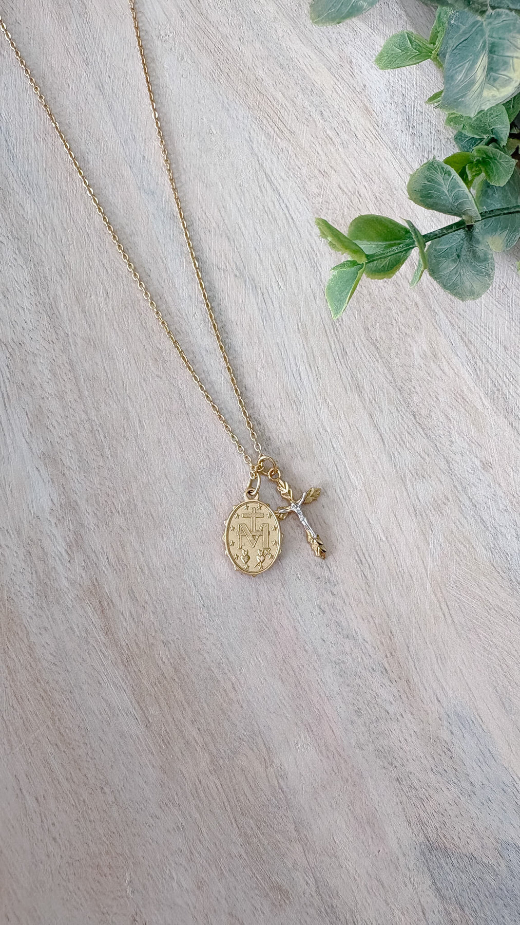 Miraculous Medal & Two-Toned Crucifix Necklace