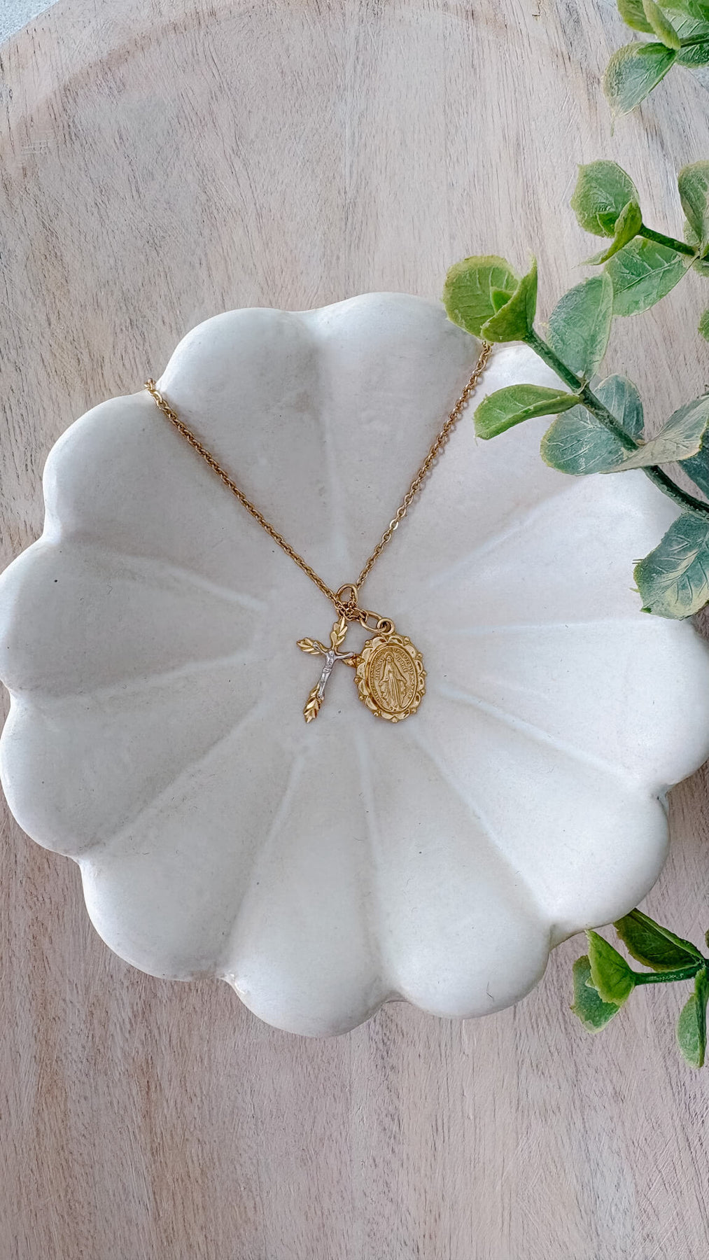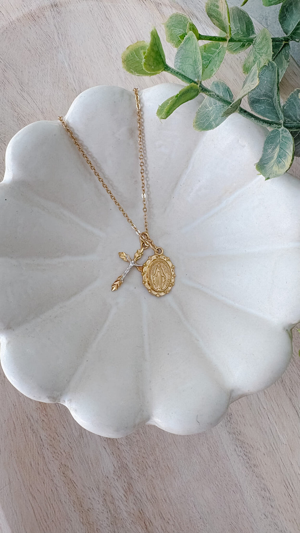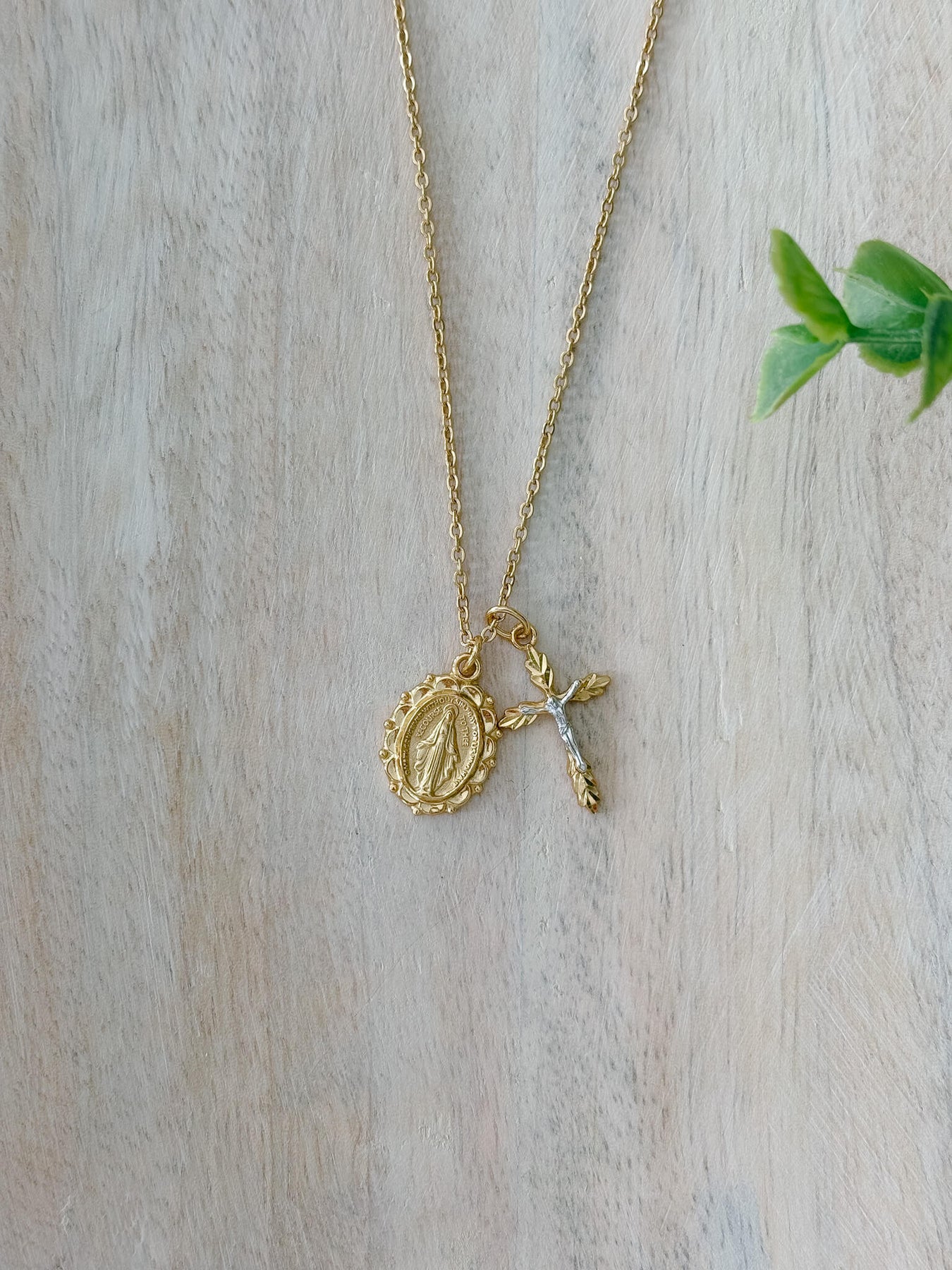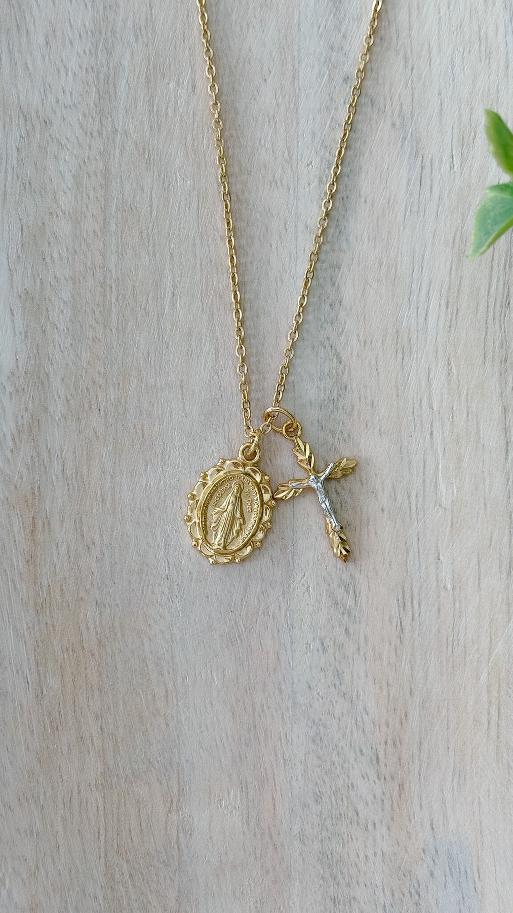 Miraculous Medal & Two-Toned Crucifix Necklace