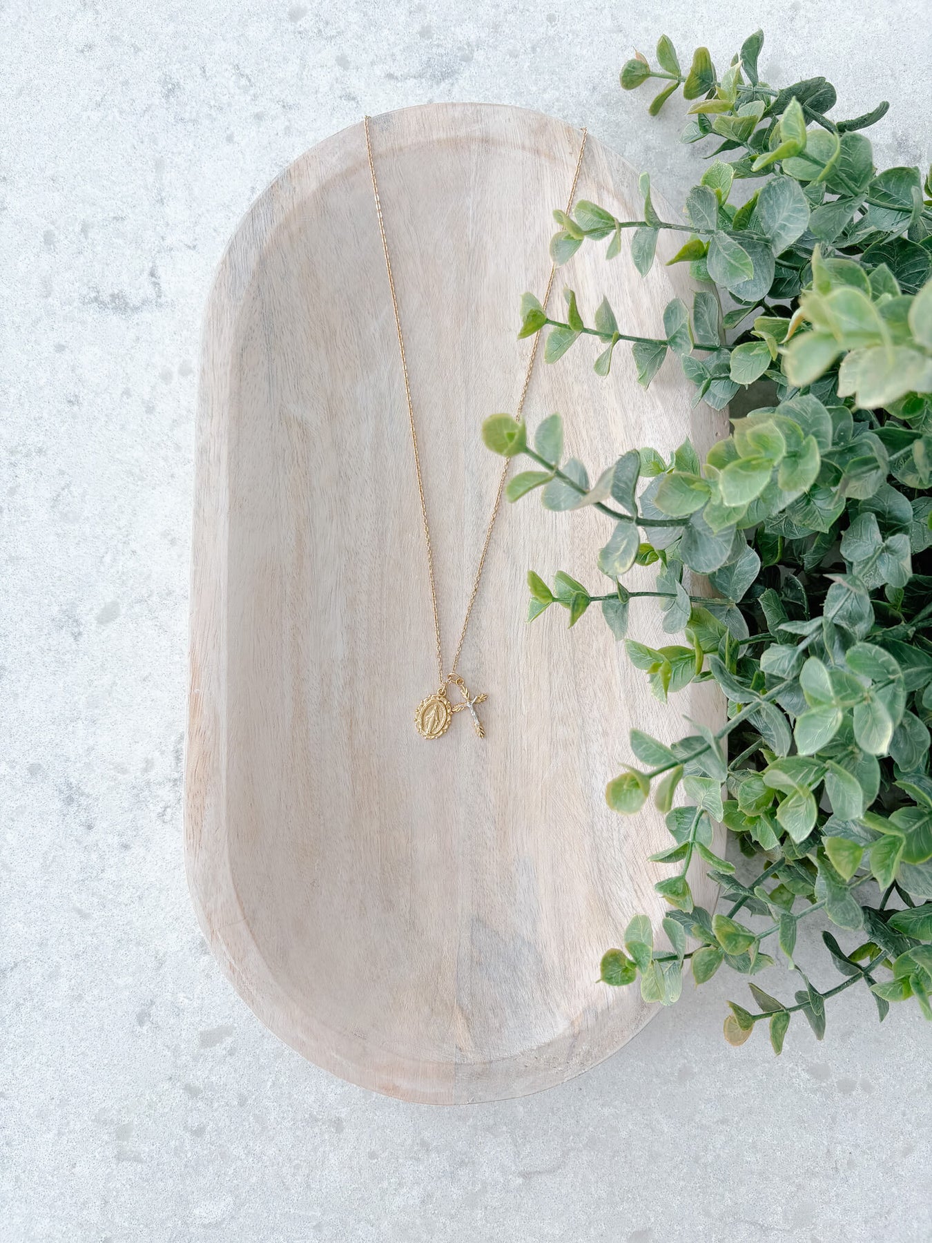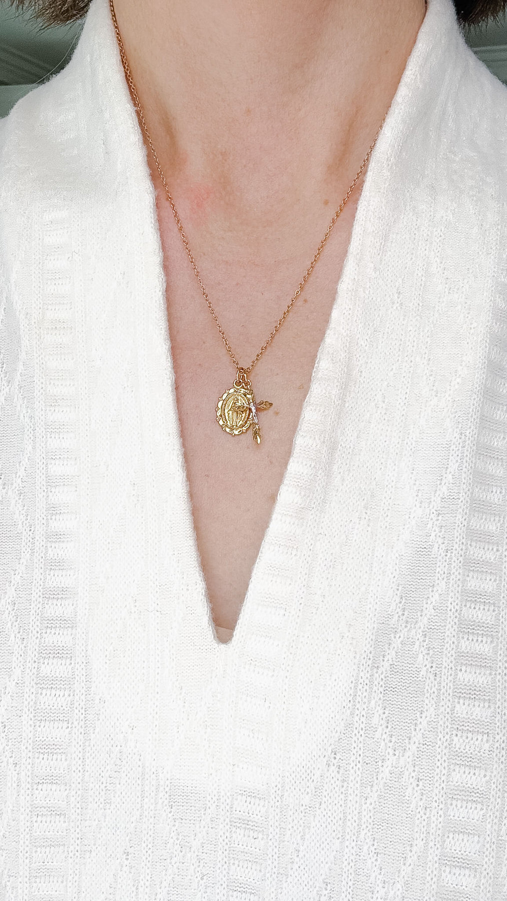 I absolutely love this necklace! The details are stunning, yet it has a simple and timeless look. It’s a beautiful reminder of faith and brings peace and comfort throughout the day. I have already received many compliments!