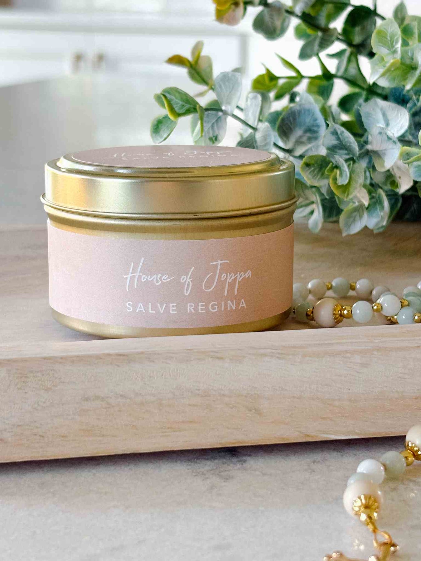 Salve Regina Candle Tin - Fresh Roses + Black Currant + Sunshine