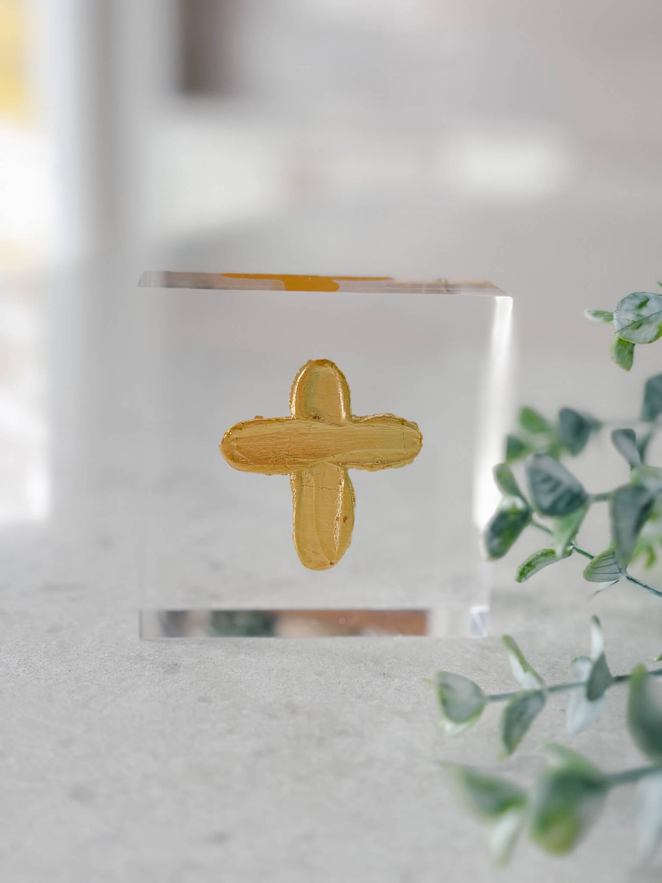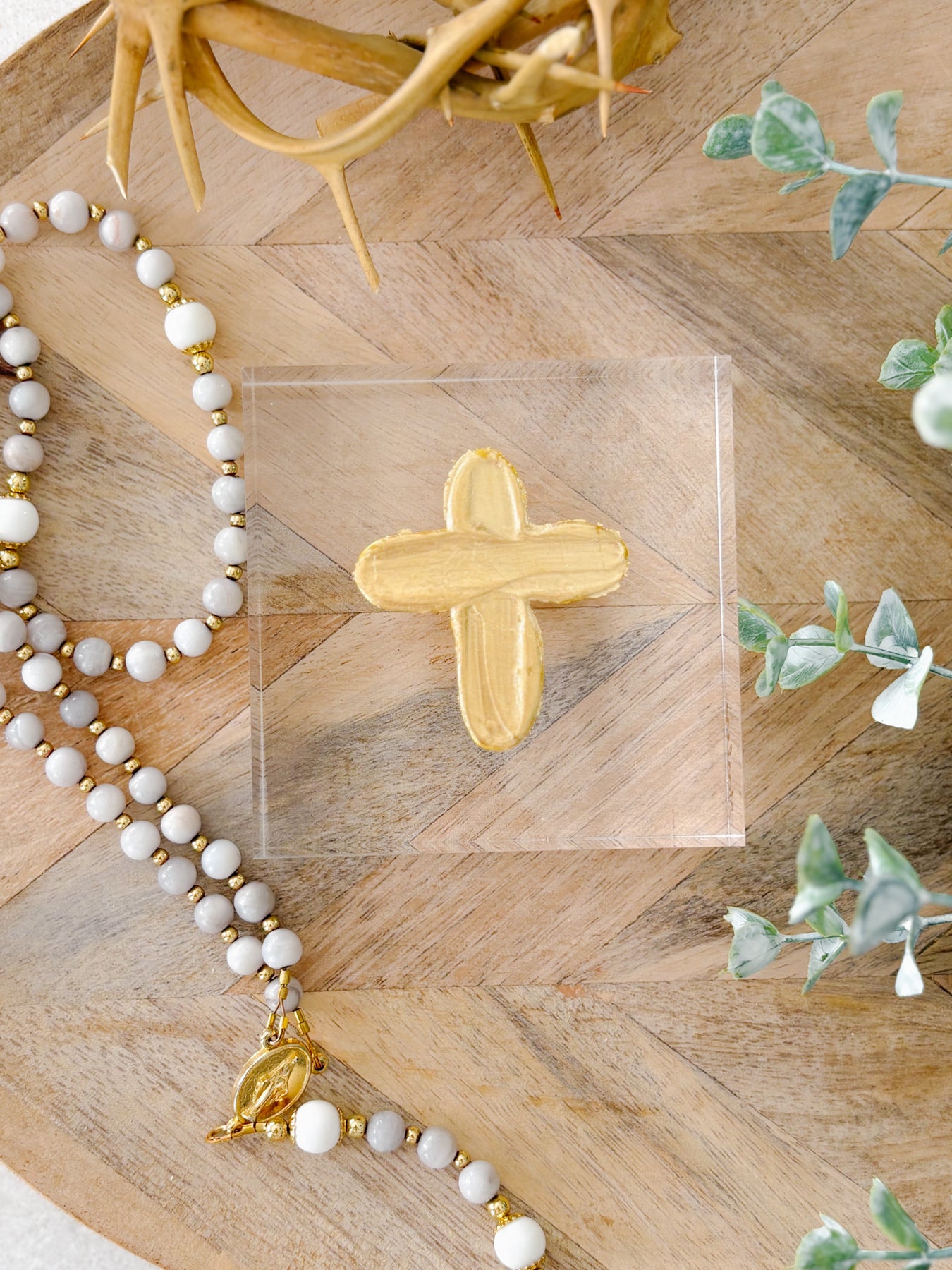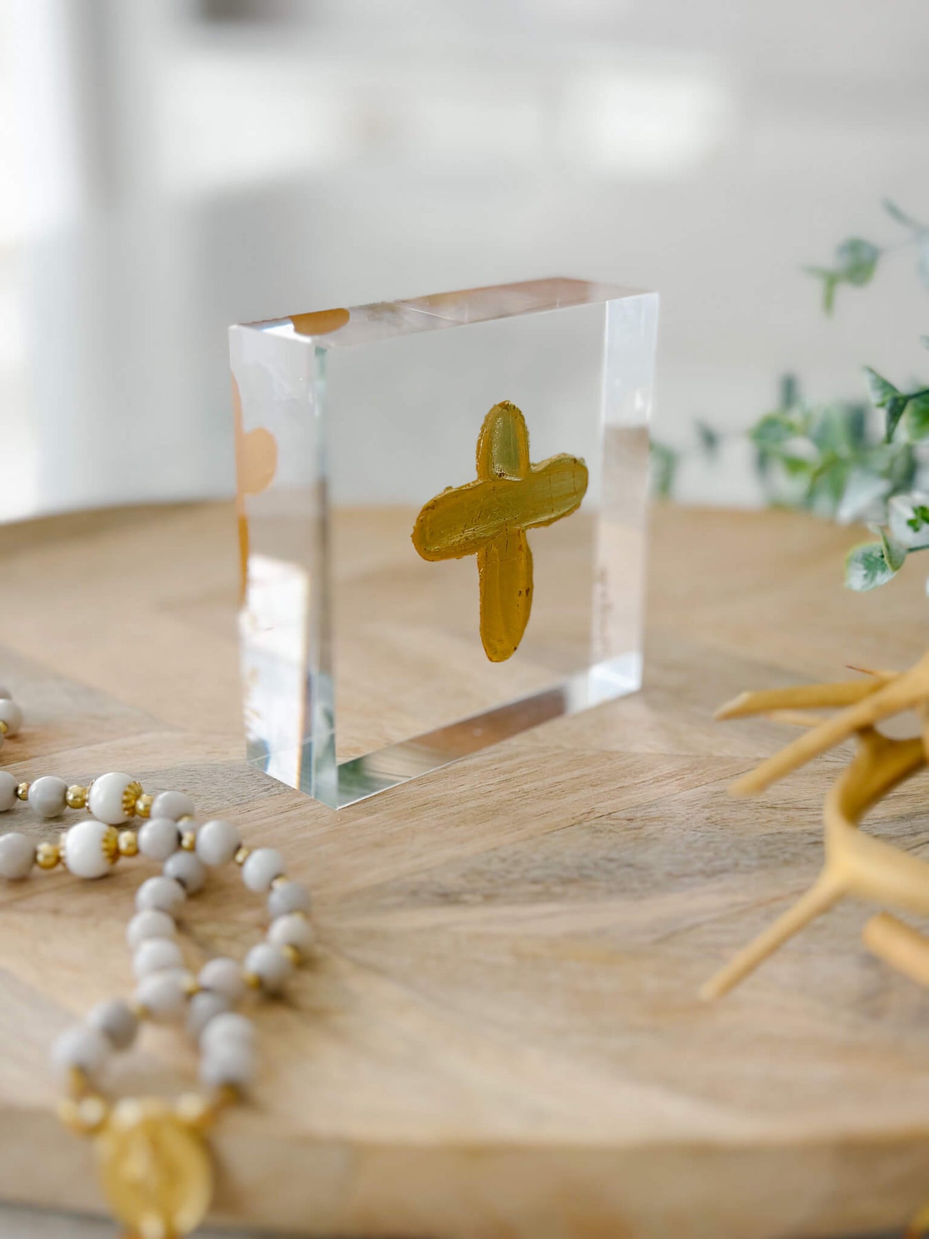 Our Single Cross Acrylic Block captures the quiet beauty of faith in its most essential form. Handpainted in soft gold and set within a clear acrylic block, this piece evokes the sacred simplicity of the cross traced on our foreheads on Ash Wednesday, a humble yet powerful sign that we belong to Christ.