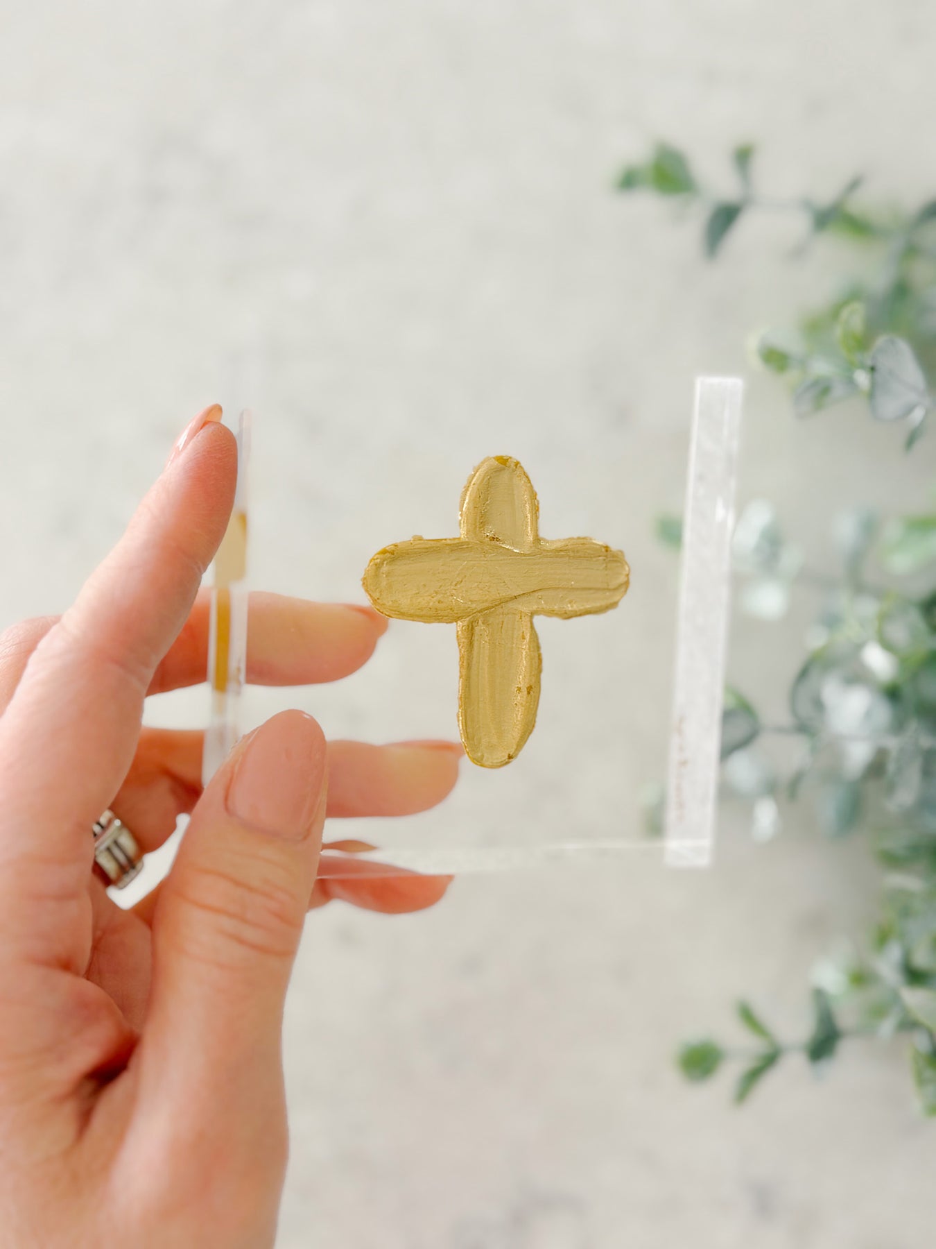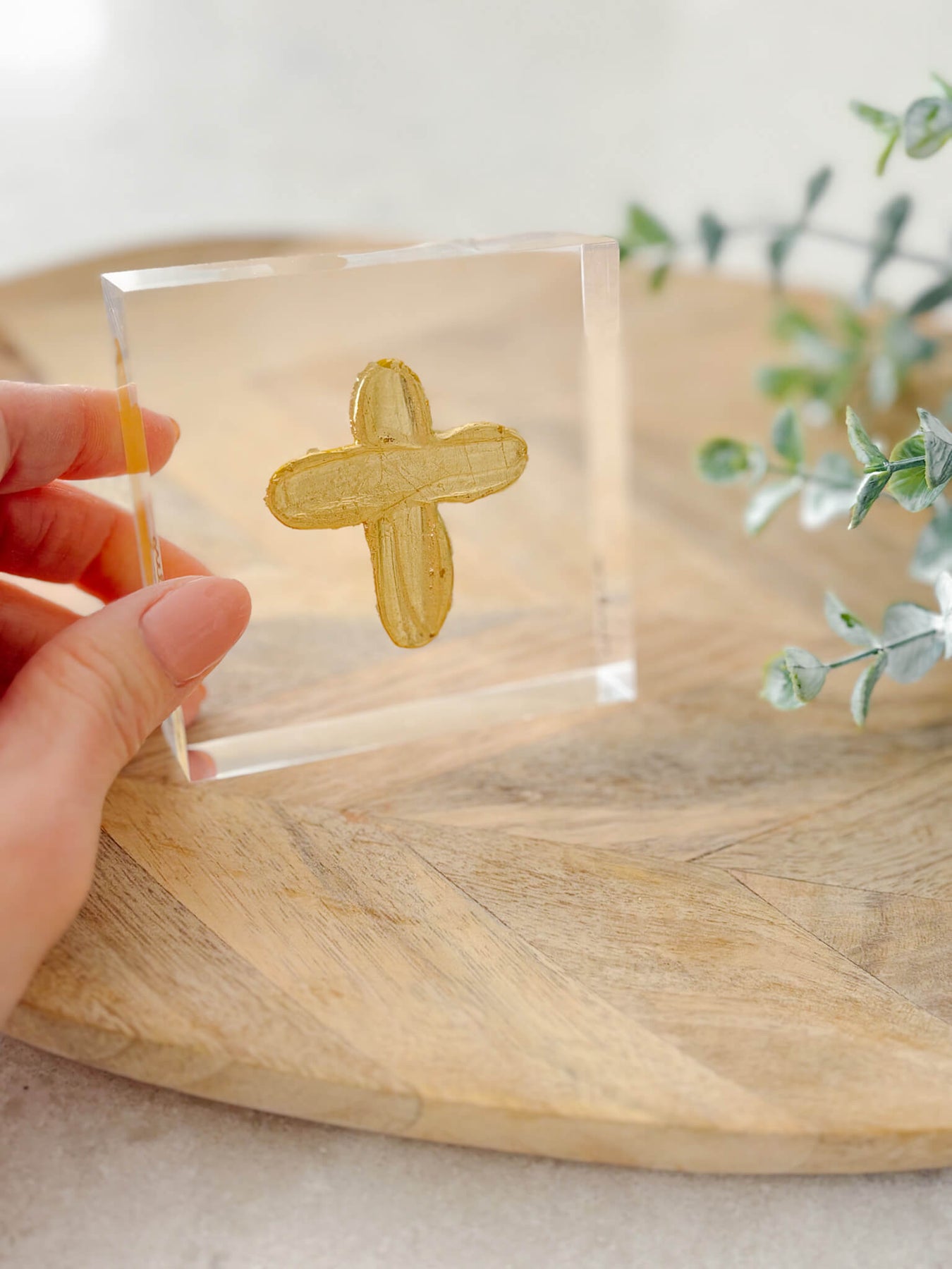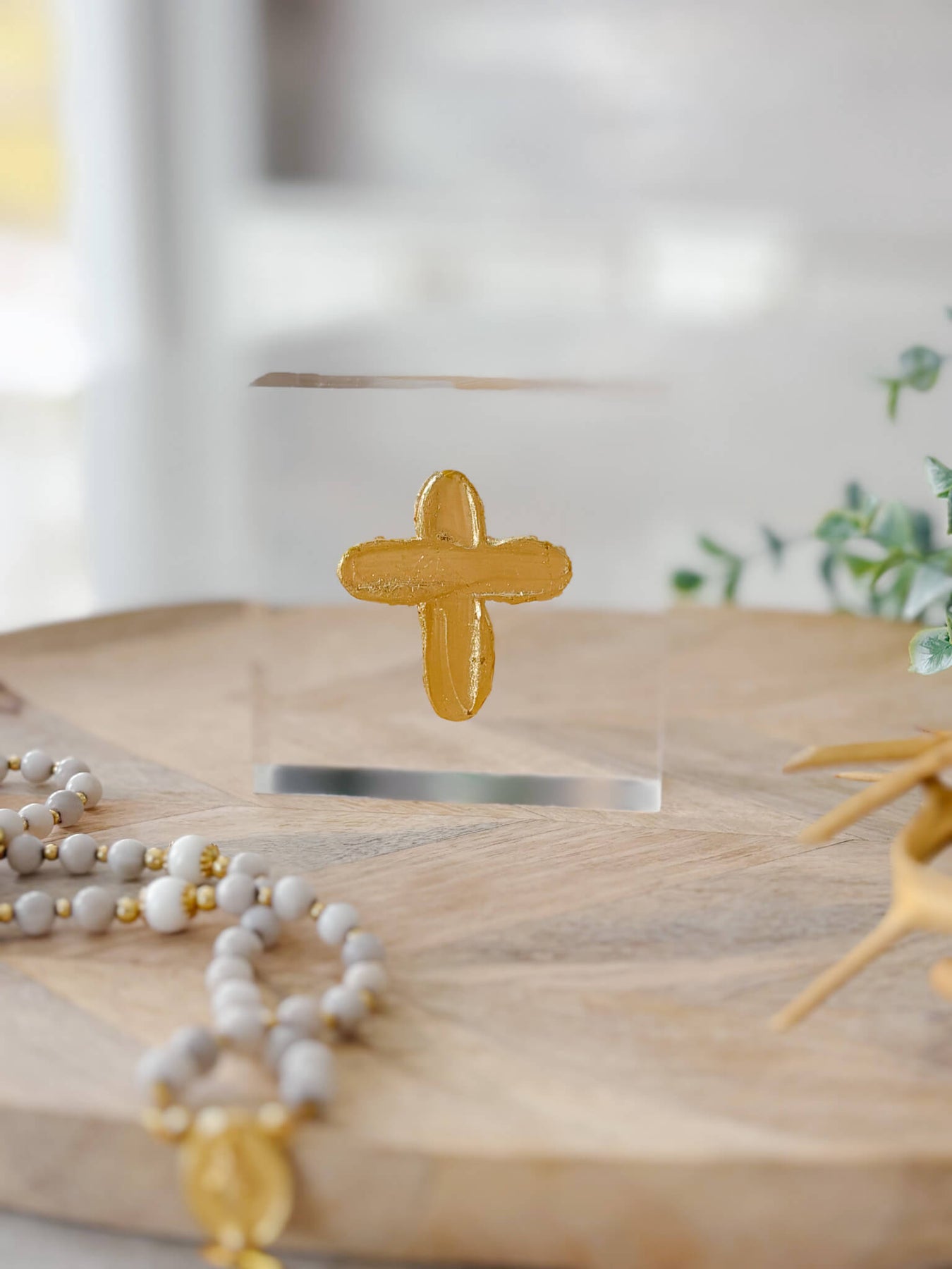 Our Single Cross Acrylic Block captures the quiet beauty of faith in its most essential form. Handpainted in soft gold and set within a clear acrylic block, this piece evokes the sacred simplicity of the cross traced on our foreheads on Ash Wednesday, a humble yet powerful sign that we belong to Christ.