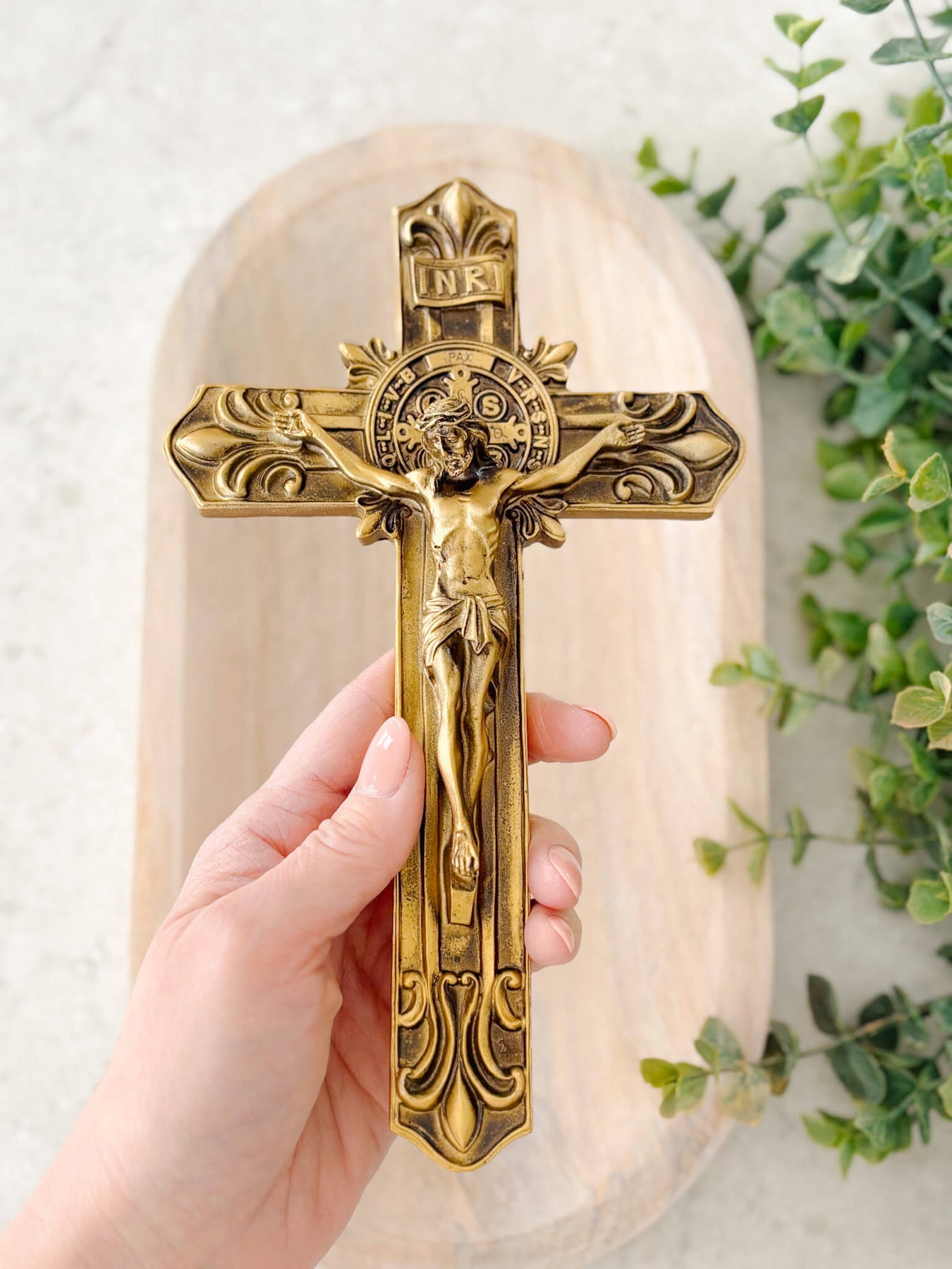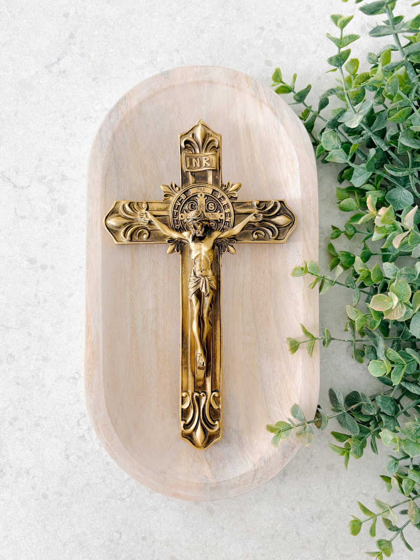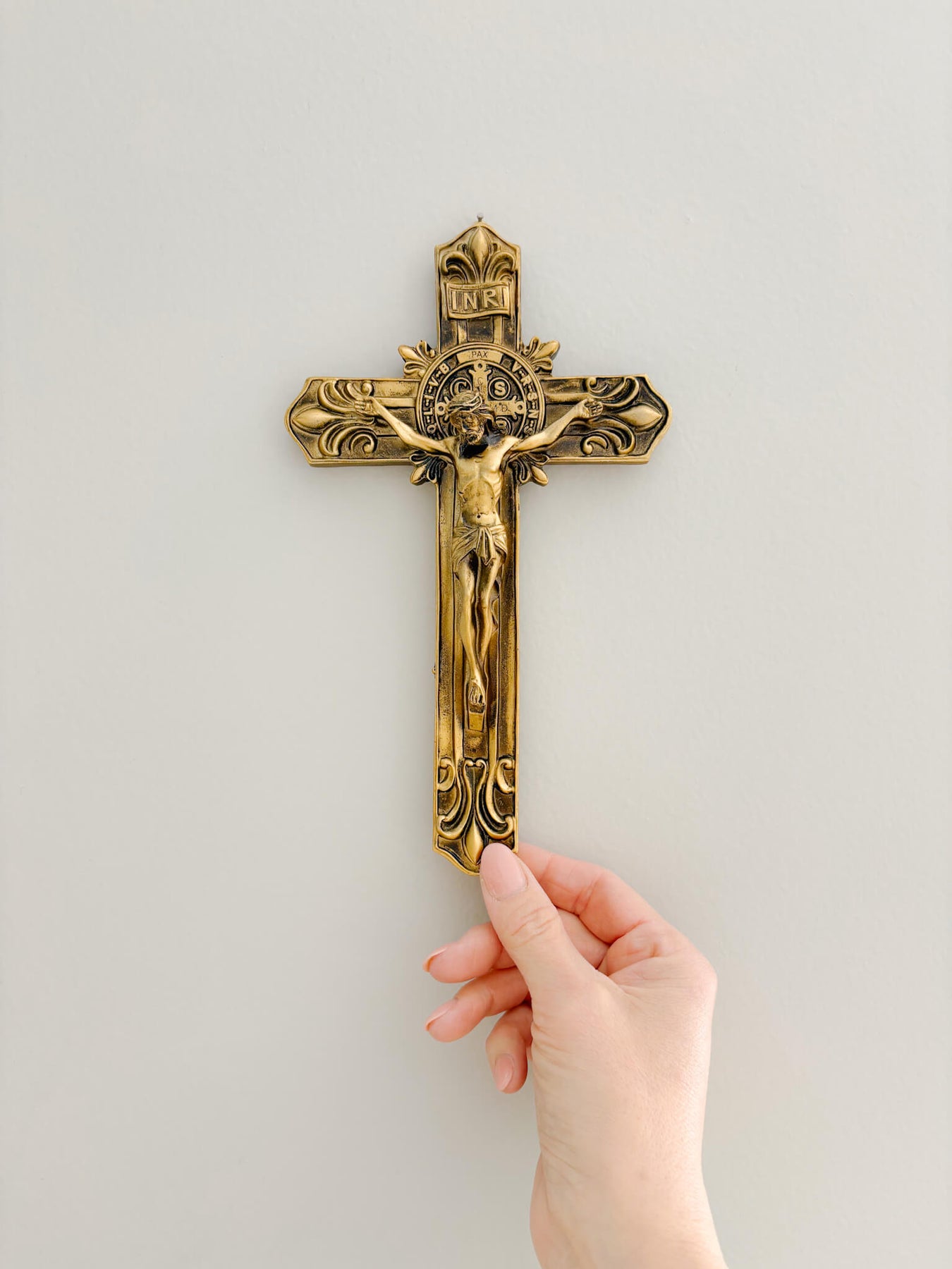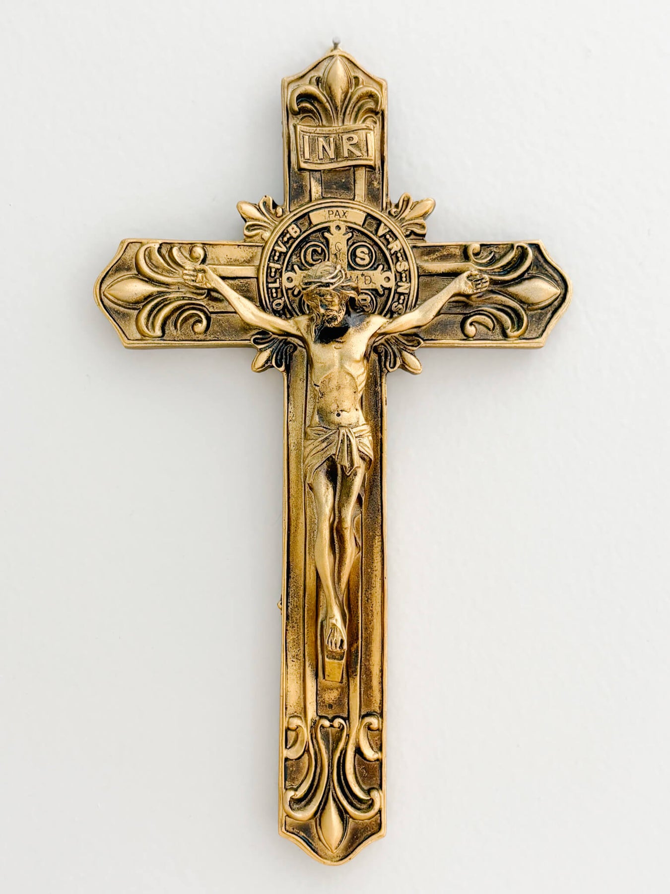 At the center of this crucifix is the St. Benedict Medal, one of the most beloved sacramentals of the Church. The medal bears sacred inscriptions and initials representing powerful prayers of exorcism, protection, peace, and the rejection of evil. For centuries, Catholics have turned to St. Benedict’s intercession for spiritual defense, clarity of mind, and perseverance in faith. When incorporated into a crucifix, it becomes an especially profound reminder that Christ’s victory on the Cross is our ultimate protection.