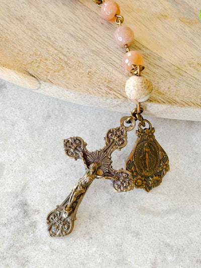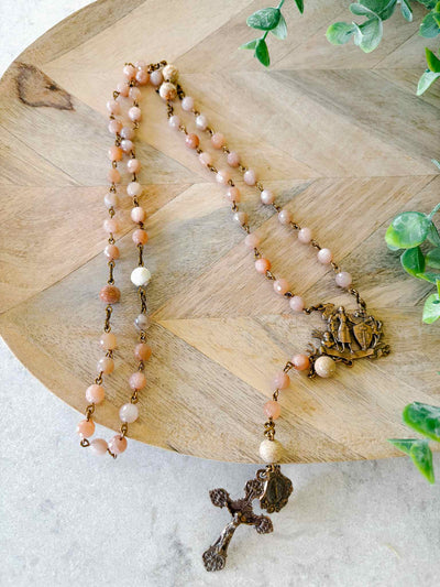 Experience the abounding strength from the Lord while praying with our St. Joan of Arc Rosary. Handmade using stunning sunstone and antique cast medals, you're sure to be inspired by this great saints heroic trust!