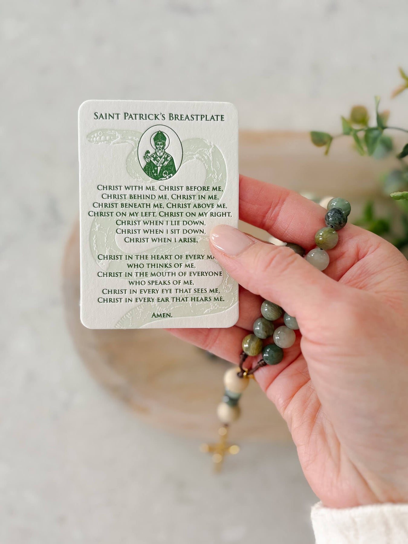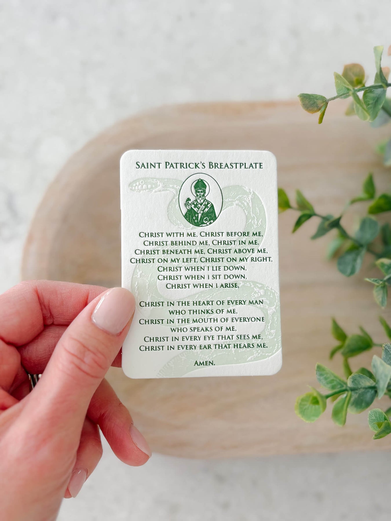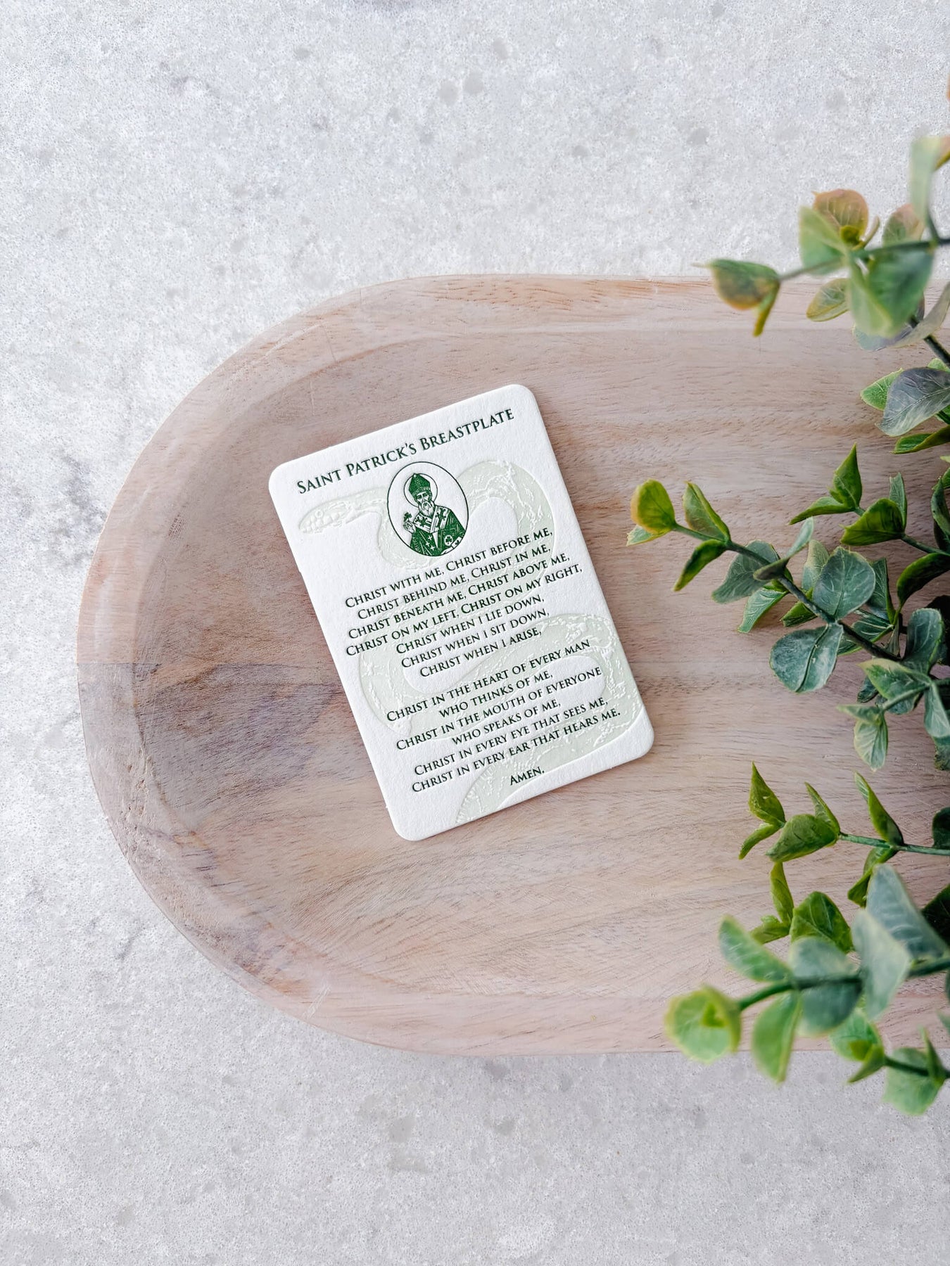 Our St. Patrick’s Breastplate Letterpress Prayer Card is an invitation to slow down, reflect, and pray with both your hands and your heart. Featuring the powerful prayer attributed to St. Patrick, also known as The Lorica - this card is rooted in centuries-old craftsmanship and created to honor words of faith, protection, and trust in God’s presence.